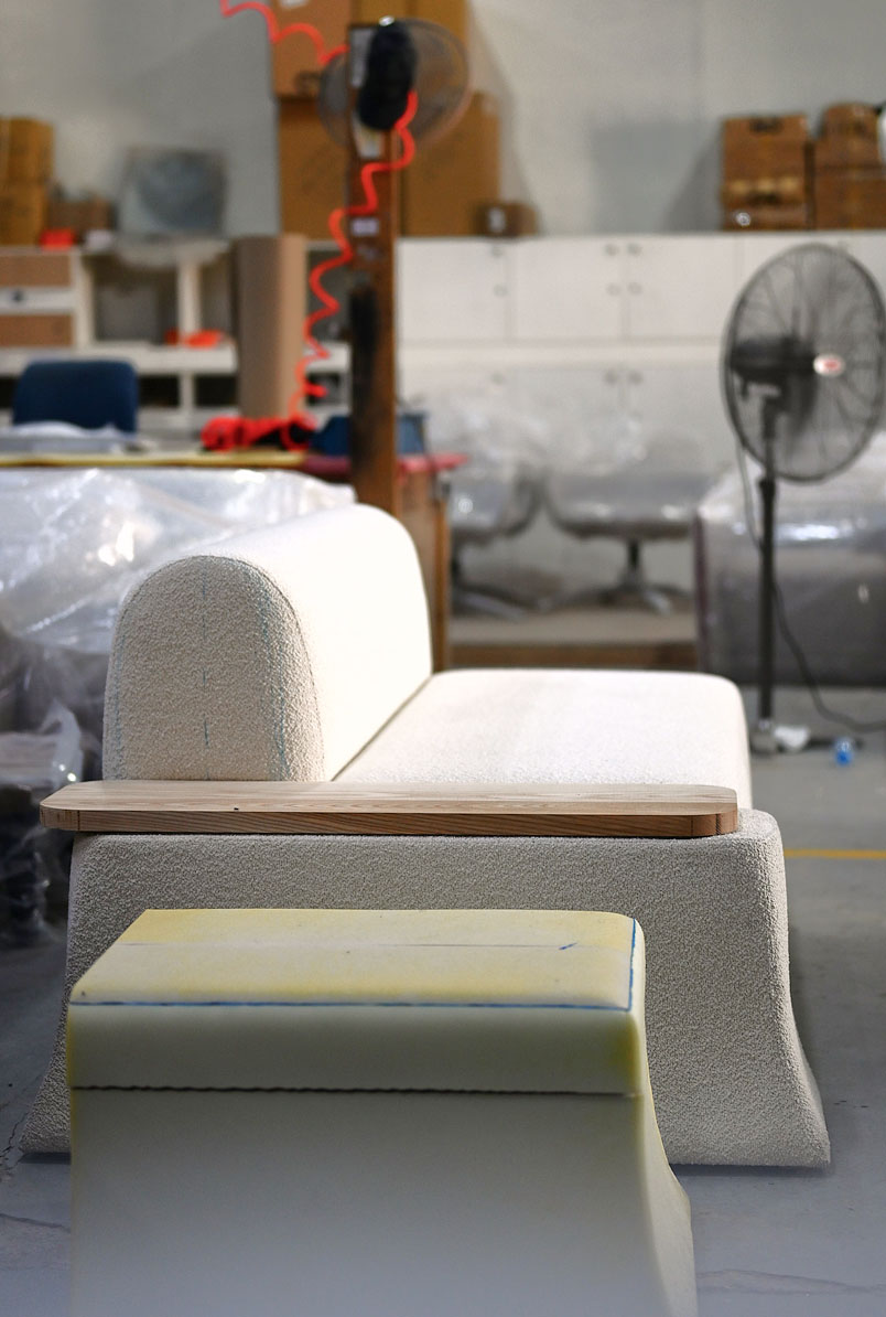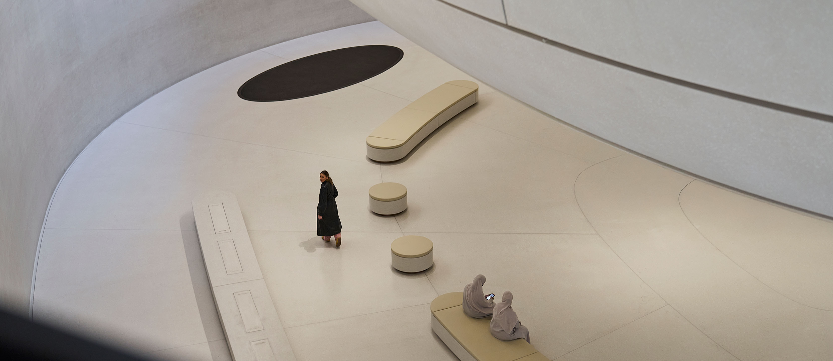In one of the museum’s atriums, the studio designed a modular seating system conceived as a near-infrastructural element. Rather than acting as furniture in the conventional sense, the system is calibrated to the scale of the space, dissolving into the architecture while enabling flexible use for pause, gathering, and informal meeting.