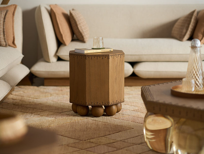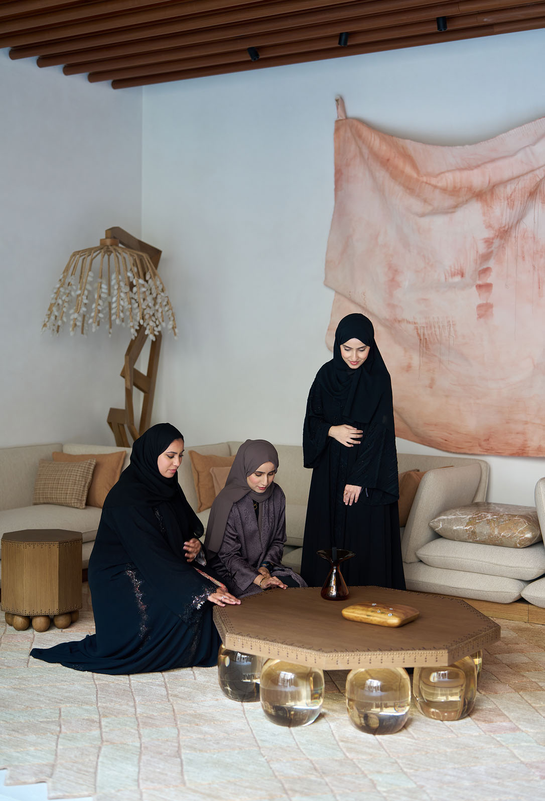Al Sheta, the colder season in al Drour calendar is marked by rainfall and the brief blooming of desert shrubs. This is reflected through cooler, muted tones, layered textiles, and materials that evoke softness and seasonal change.